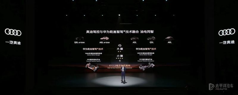 至于是如何实现“油电同智”的,首先是奥迪最新的PPC及PPE平台都采用了E³ 1.2 电子电气架构,该架构这不仅为纯电车型打造了高效智能底座,更为燃油车构建了与电动车同级的硬件土壤。技术融合方面,华为乾崑智能驾驶系统作为“大脑”负责决策,一汽奥迪VMM(车辆运动管理系统)作为“小脑”执行控制,双系统协同实现了精准的车辆运动控制。